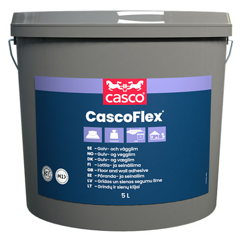 CascoFlex® er et klassisk lim for de fleste typer PVC-, tekstil- og linoleumsgulv og veggbelegg (PVC-sjikt tykkere enn 0,6 mm). Kan brukes både til våtliming og heftliming.